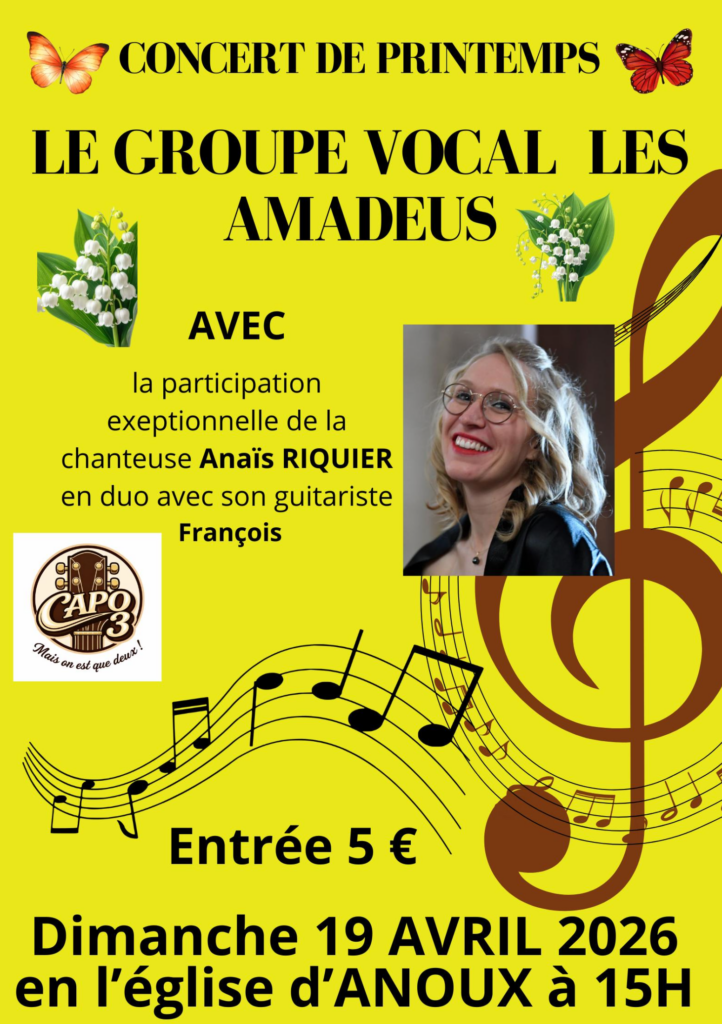Il aura lieu le dimanche 19 avril 2026 à 15 heures à l’église d’ ANOUX (à 6 kms de BRIEY)